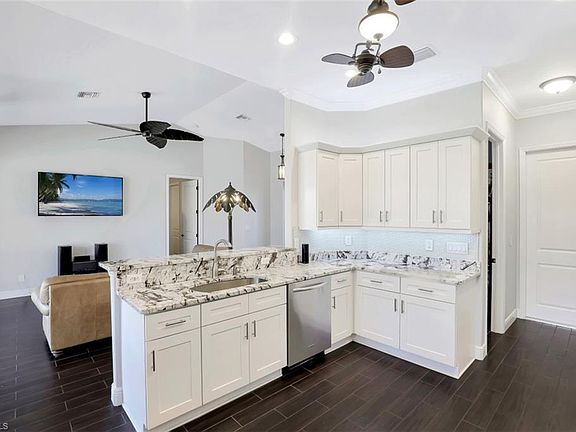 NEWER CONSTRUCTED (2017) WELL MAINTAINED MOVE-IN READY 4 BEDROOM/2 BATH POOL HOME! Welcome to this beautifully designed home with AMAZING CURB APPEAL and an OPEN CONCEPT floor plan with TILE flooring & CROWN MOLDING throughout. The kitchen has all the key ingredients for whipping up all your best recipes! STAINLESS STEEL APPLIANCES, TILE BACKSPLASH, STUNNING GRANITE, WOOD CABINETRY, PANTRY, LED UNDER CABINET LIGHTING, BREAKFAST BAR, DUAL FAN AND BREAKFAST/FORMAL DINING AREA within steps from the kitchen. An abundance of NATURAL LIGHT with TRIPLE SLIDERS in living area that overlooks the POOL. Social distance entertaining with no problem on the LARGE OUTDOOR SCREENED PAVERED POOL DECK that encases a nice sized HEATED POOL WITH 6 WATER FEATURES and an INTEGRATED HOT TUB with a cascading WATERFALL feature that can all be controlled with a wi-fi mobile app. The outdoor covered area features two OUTDOOR CEILING FANS and a WOOD LAYED ceiling that adds warmth and compliments the 3 STONE wrapped columns. Mature landscaping, PAVERED CIRCULAR DRIVEWAY, 2 STALL GARAGE, RING DOORBELL and matching WOOD LAYED CEILING ENTRY as lanai complete the exterior curb appeal. This one won't last long!