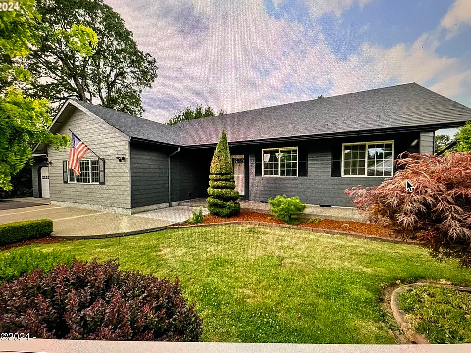 Beautifully maintained single-level home nestled on a peaceful closed street in the heart of the Willamette Valley. Spacious family room, living room, laundry room, murphy bed in 1st bedroom, ceiling fans, air conditioning, primary bedroom features a walk-in closet with organizer and bathroom with step-in shower. Work space in garage. New paint inside and out, newer roof, gutter guard system, and tool shed. The property features a stunningly landscaped front yard and fully fenced back yard with lush turf, a spacious cement patio, serene garden area, and tranquility at its finest with a rock pond and fountain. With ample parking, including rv parking, this home has it all.
