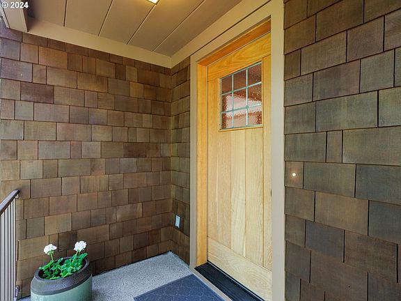 Private & quiet, updated & eco-conscious, low-maintenance & completely move-in ready! Nestled on a peaceful, private lot this 2012, custom-constructed, cedar shingle sided home combines modern, eco-conscious comfort and neutral tones with timeless charm. Enjoy warm hardwood floors throughout the main level, clear fir and hemlock interior trim, a tranquil dining area and an inviting living room complete with Heat & Glow gas fireplace, custom built-ins and views of dreamy sunsets through the trees. The spacious kitchen features stainless appliances, KitchenAid dishwasher, quartz countertops, custom lighting, an induction range and an extra large walk-in pantry. The sweet deck and peaceful, private patio just off the kitchen / dining areas allow for both quiet moments intimacy while entertaining guests. Laundry with LG ThinQ washer & dryer. This home boasts 4 spacious bedrooms, 2 1/2 bathrooms with the primary suite conveniently located on the main level. 2 of the 3 upstairs bedrooms also offer walk-in closets ensuring ample storage for all. Work from home with the small-business ready home network complete with network drops in every room built for redundancy, reliability and ease of operation in mind. Plus, there's an attached, over-sized 2-car garage with a Tesla Charger, and 2 storage areas just off the garage. Situated just a short distance from the Hillsdale farmer's market, cafes, and shops, and with convenient access to OHSU and downtown this home offers tranquility and urban convenience. Home Energy Score of 8/10! [Home Energy Score = 8. HES Report at https://rpt.greenbuildingregistry.com/hes/OR10151582]