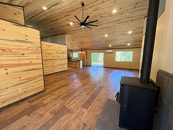 Beautiful home in the peace and quiet of northwest Montana, ideally situated on almost 30 picturesque acres. Panoramic mountain views - gently sloping, open land with southern exposure. This property has all of these and more. Natural light, expansive living space and modern rustic touches best describe the home. Blue pine tongue and groove adorn the ceilings and walls throughout. The kitchen boasts hickory cabinets and a large custom steel island and round bar top for holiday baking, seasonal canning and extra family seating. Waterproof scratch-proof laminate flooring covers the main living space and high traffic areas. Warm carpet for bedrooms and bonus areas. Each bedroom has an en suite, with the master bath featuring a soaker tub, separate shower and dual sinks. From the front and back porches, take in the views and the wildlife drawn by the spring-fed pond. Privacy, elbow room and a thoughtfully constructed home await.
