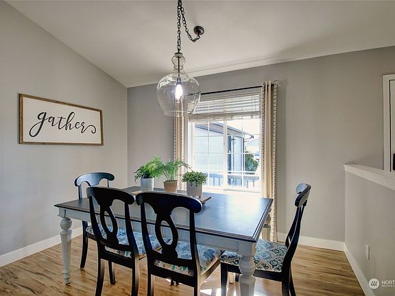 Burlington Rambler...Move-in ready! Nicely updated home w/3 bedrooms, 2 bathrooms, dining rm, great rm w/frpl & built-in wall of cabinets/tv area. Beautiful open kitchen w/granite countertops, loads of cabinets, stainless appliances, pantry area & breakfast nook. Lovely primary bdrm w/full bthrm, separate tub, shower, walk-in closet & dbl vanity. Two bdrms & main bthrm at opposite end of home. 3 car garage (748 SF) w/deep sink, work benches, attic storage w/pull down ladder. Fenced bkyd, and nice parking area out front. Sprinkler system. Convenient to I-5, town and schools.