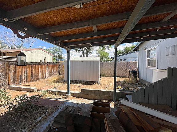 This cozy 2 bedroom, 1 3/4 bath home is move in ready. The home has carpet in LR, hall, BR's, laminate flooring in DR & kitchen, double pane insulated windows, electric has been upgraded, re-plumbed w/copper piping, heat pump (7 yrs old), ceiling fans. From the large master bedroom w/walk in closet & large 3/4 bath w/heavy duty stackable washer & dryer walk out to a private covered patio in backyard. Kitchen is bright and open w/lots of cabinet space, dishwasher & stove just 3 yrs old. Lovely french doors lead from the spacious living room to outside patio/car port with misting system for your comfort. The air conditioned work shop w/separate electrical box & storage attic is perfect for all those ongoing projects plus there is storage shed in backyard for extra items. Plenty of room in back to create a garden and space for your special landscaping touch. A wireless weather station which shows weather, wind speed, humidity etc. is located in LR w/antenna on roof will stay along w/outside patio set & BBQ. A one (1) year home warranty plan included. Give us a call so we can show you this adorable home.