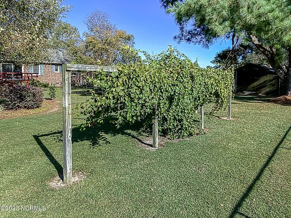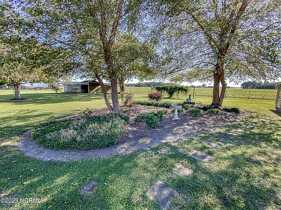 This one owner Brick ranch is immaculately maintained. This meticulously landscaped yard has mature trees, flower beds & grape vines.Sit and enjoy your morning coffee with waterviews from the back of the home. Outback you will be surprised by the spacious detached garage with water and electricity surrounded by covered concrete patios. There is also a large shed with Covered concrete . Enjoy entertaining on the deck or the covered patio, a great place to make those memories all situated in your fenced in backyard. This one story home has a foyer entrance with the Great room as center of the home featuring a gas fireplace. The kitchen and dining area are connected. Separate laundry area with a closet pantry. Septic says 2 bedroom but there is a 3rd room that could be used as an office, bedroom or flex room.The unfinished frog could be converted into a flex room. Large attic floored for storage.Attached there is an extra large 2 car garage. No HOA, No flood ins. needed.Very clean and meticulously kept, you do not want to miss this one. This home is out in the country but close enough to a town with shopping and restaurants. Short trip to the OBX pe VA. Call to today!
