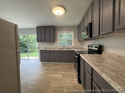 This is a great family home, very spacious, split level, 3 bedroom 2 bath home. Large living room and den, great for family gatherings. Home also features a sun room overlooking the fenced back yard. The kitchen and diinign are are very spacious, dining area offeres easy acess to back porch. The lower level bathroom still needs to be updated/repairs in progress. THe home also comes with a washr and dryer. Double carport, great space. The home is conventionally located to shopping centers, Ft. Bragg as well as the All American Freeway. Pet negotiable. Please call office for appointment.
