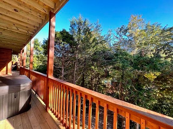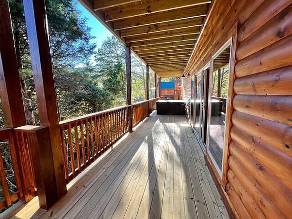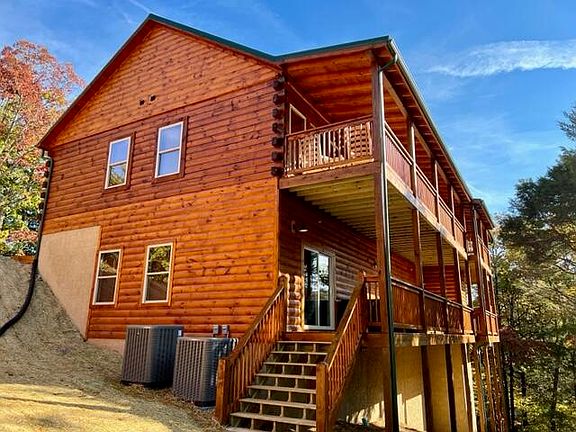 Located just over a mile from the center of the parkway in Pigeon Forge, this new construction 8 bedroom cabin is not only in a superb location, but also has an incredible 2 story open floorplan! Positioned along the crest of the development, this cabin boasts mountain views from both covered back decks, one with two hot tubs! There is ample parking and the drive in is nice and easy. As you enter from the covered front porch, you will be greeted by a soaring cathedral ceiling with tongue-in-groove knotty pine throughout. This open kitchen-living-dining combo is a great gathering place with plenty of seating for everyone. All appliances have been doubled! 2 refrigerators, 2 dishwashers, 2 microwaves, and 2 ranges! This cabin comes fully decorated and furnished with everything you could need for used as a short term rental. Current rental projections are $220k-$250k annually and over 12 million tourists visit the Great Smokey Mountains each year. All appliances are stainless steel, and counter tops are all granite. there are 4 king suites on the main level, each with it's own private bathroom. The lower level offers 2 king suites and 2 bunk rooms, also with their own private bathrooms. Along with the sleeper sofas, the capacity will accommodate a whopping 24 guests! Ready for entertainment? There is a game room with a pool table and multiple games adjacent to the wet bar with microwave and wine refrigerator. Next you will find a movie theater with actual tiered theater seats for 15 people! All bedrooms feature 4k Roku TV's. This new cabin development is very unique with it's wonderful location, easily accessible and in close proximity to all of Pigeon Forge and Gatlinburg's many attractions and dining experiences. Estimated completion 6/01/2023. Finishes are similar. All information deemed reliable but not guaranteed. Buyer/buyer's agent to verify. View 3D Matterport of our 8/8 cabin design for similar finishes/decor at https://my.matterport.com/show/?m=Uj1o