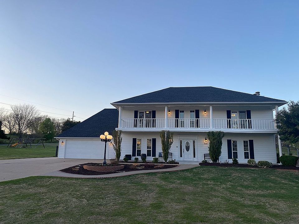 Southern colonial with new front landscaping, wrap-around porches, Detached apartment with additional 2 car garage, full kitchen, bath and laundry room. One block to elementary, most homes on acreages, The lot to the west with the playground on it is not part of this sale.