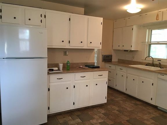 PRICED TO SELL! Great starter home or rental property. This cozy 2 bedroom bungalow has a huge covered front porch and an expansive sun room in the back that opens to a large backyard w/patio space. Master and bath have wood parquet floors and an extra large closet. ALL APPLIANCES are included in the huge eat-in kitchen that has TONS of cabinet storage. Additional pantry storage cabinets in the attached mud room with freezer. The basement includes a massive 26 + foot finished family room with built in display cabinets on one end and storage drawers under the stairs. There are also 3 partially finished bonus rooms in the basement as well as a separate laundry room - WITH Washer & Dryer. The extra long driveway leads to an oversized garage w/automatic opener and built in workbenches/cabinets. Separate water well w/sprinkler system.
