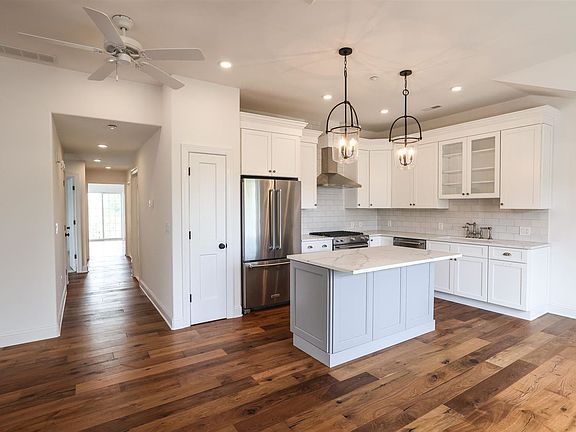 New 4 BR/3 BA flat style condominium with private rear deck and garage parking. The unit is located on the top floor, Southeast corner in the building adjacent to Washington Street. Upgraded amenities include vaulted ceilings, hardwood and tile flooring, tiled bathrooms, kitchen appliances, fixtures and hardware. Enter into a beautiful open floor concept with a kitchen with quartz counters, stainless steel appliances and center island; living room and dining area. The rear section of the condo includes a master suite with private bathroom and walk-in closet, two additional bedrooms, two hallway bathrooms, and a fourth bedroom/den with wet-bar and slider that leads to an outside deck. This condo is completely full of modern finishes. Common area elevator from the ground level to the third floor. Garage parking in the center aisle of the garage area. Storage closet on garage level. Turn-key and ready for occupancy!