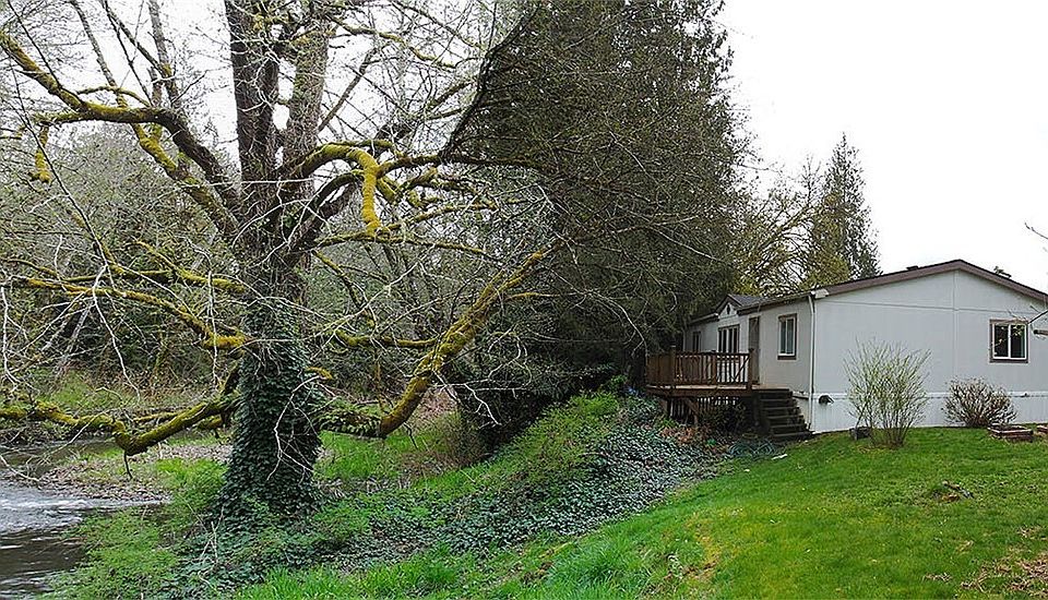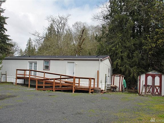 Affordable country living with garden space, green house, chicken hutch and 16x24 shop. Newer roof, skirting and fresh paint inside. Relax on those sunny days from your back deck overlooking the year round creek below. Last two owners say house never flooded. Use the ramp or stairs to enter your new home. Wider doors inside and out for wheelchair accessibility. View of creek from living room and about 5 miles to I-5, central to Portland and Seattle. Bonus room lacks closet but used as bed.