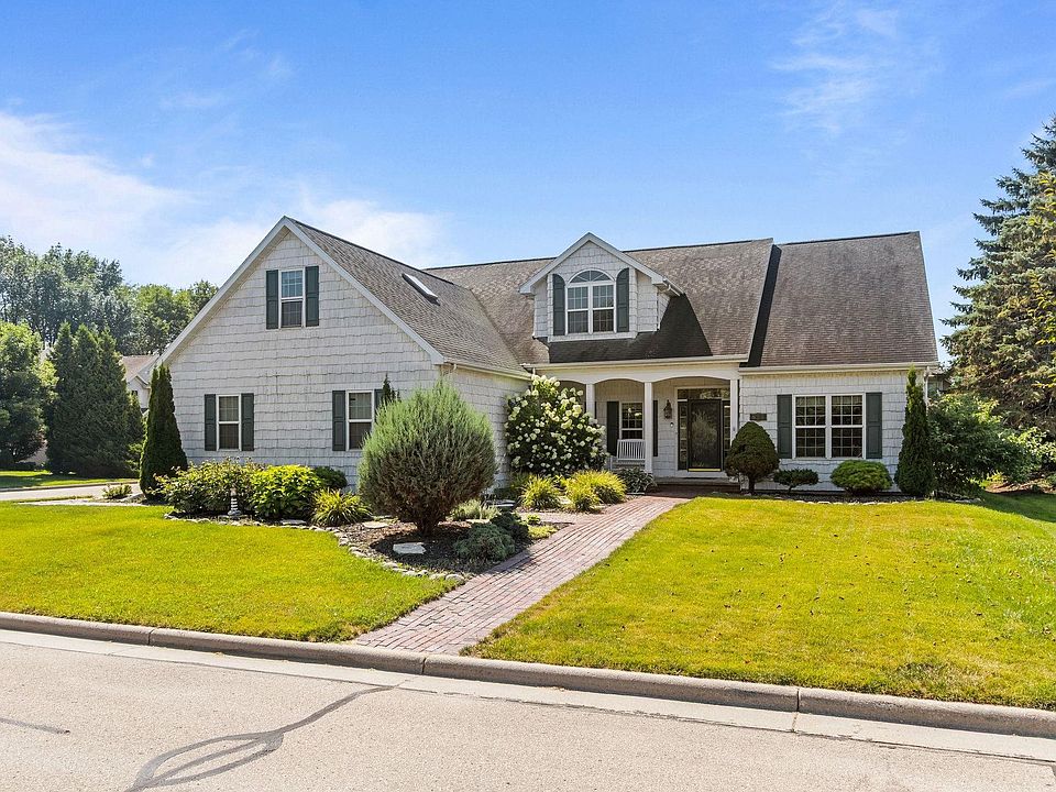 This two-story home offers over 4,000 sq. ft. of living space on the main and upper levels — the perfect canvas to create your dream home. The kitchen features white cabinetry, a walk-in pantry, and a dining area with a cozy fireplace, opening to a bright four-seasons room. Just off the kitchen, the spacious family room boasts soaring ceilings and a second fireplace. The main level also includes a formal dining room, a den/office with a wall of built-in bookshelves, and a primary suite with a private ensuite bath. Upstairs are three generously sized bedrooms and a full bath. The lower level offers a large family room ready for your personal touch and another full bath. One Year Home Warranty Included. Bring your ideas and vision — with a little TLC, this home could truly shine!