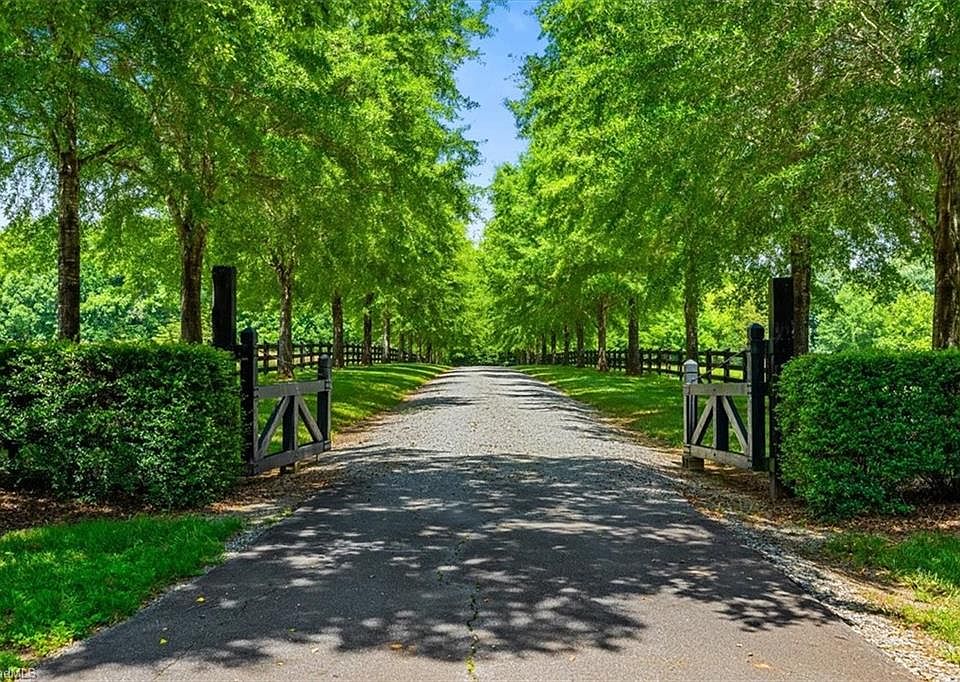 Melody Farm - you might think you are heading down Magnolia Lane, but instead of Georgia, you are in NC! This magnificent property is situated on 20+ AC of lush, beautiful land. Custom designed by the owners & built by Jobe Const, it is truly one of a kind. The main house boasts generous rooms on both the main level and upper level. Primary Suite on main, living & dining rooms plus open kitchen, large den & stairway, make for more than convenient living, regardless of how many are living in the house. Attached 2 car garage completes main house. A grand barn with well-appointed guest quarters, restoration type room for any hobby, kitchen & living area plus horse stalls. Multi acre dog fences. This property has it all for anyone seeking privacy & connection to the land. Idyllic grounds for horse trails, gardens, crops or various additional building sites. Shade trees promote energy efficiency. Rare opportunity to own some of the best land in Guilford County. Contact LAs for more info.