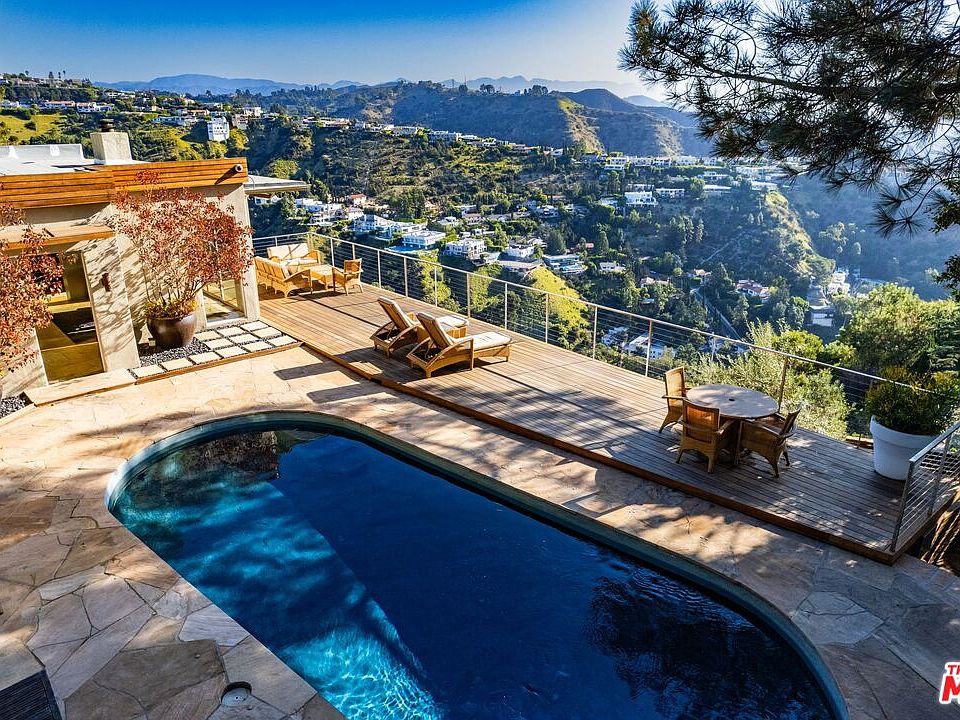 LOOKING FOR BACKUP OFFER- Private Top-of-the-Hills double-gated enclave with jaw-dropping 270-degree views, glorious sunrises, pool, spa, and bonus office/guest bedroom in the Wonderland School District. This one-of-a-kind hilltop view with yard and pool has been off the market for nearly two decades. ||| The pool, wrap-around sundeck, dining room, living room, kitchen, primary suite, and primary must-see bath ALL enjoy spectacular jetliner views of the entire LA Basin from the Griffith Observatory to the beach. ||| The Jim Magni-interior designed home sits behind a double-gated compound that will make you feel like you are in the middle of the woods while being just 7 minutes from the Sunset Strip. Walls of glass maximize the LA views and glorious sunrises on the east side and the quiet forested hillside with deer sightings on the south side. ||| The 4 Bed, 3.5 Bath home includes a gorgeous dining room, fireplace, two full suites, a 3rdbedroom with a pocket door to the 3rd bathroom. The versatile fourth bedroom (156 sq ft), initially a garage, now doubles as a home office. A dark bottom 8-foot-deep pool, new spa, and 1,000 square foot deck also enjoy spectacular views, often above the clouds. ||| Spacious rooms, large sundeck areas, and additional guest parking make it the ideal home for entertaining. Through the 2nd gate there is parking for2 cars, a carport, and an EV charger. ||| At Grand View you can secure your coveted space at the Wonderland Avenue Elementary School that rivals LA's highest rated $40,000 private schools.||| Bonus: Architectural expansion plans ($10,000 value). ||| FINANCING: This property qualifies for an interest rate program that starts as low as 4.75% subject to buyer loan qualifications. ||| Notables: New railing, new floors, reinforced decking, Viking range, high-end Verkada Command camera system, outdoor patio heater, updated secondary HVAC, motorized shades, full sun on the pool for most the day even during winter! ||| Note: please do not take Yucca Trail, instead drive up Kirkwood all the way to Grand View Drive, then turn left.