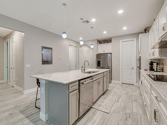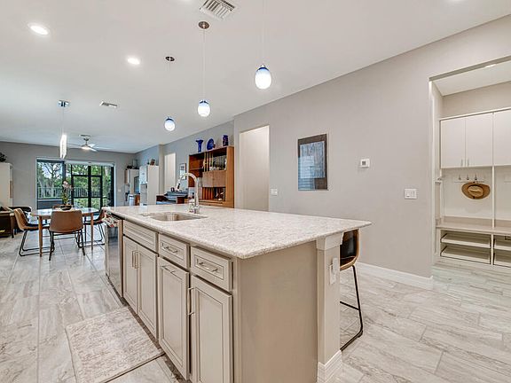Fabulous 4 bedroom/2 bath home is move-in ready. Gourmet kitchen with white wood cabinets, Quartz, high-end SS appliances, and large walk-in pantry. Primary bath has private bathroom with dual sinks and shower. Lots of custom closets and storage space. Telescope sliders from great room open to screened patio, and fenced area with hot tub overlooking lush garden area. All impact windows and doors .Pelican Smart combo water filtration system and soffener. Air duct Purifier. Two clubhouses, each with a resort style pool and fitness center. Tot lot, tennis; pickleball; basketball. For those nights when cooking does not fit into your schedule, you can enjoy Food truck night in front of clubhouse. Over $50,000 in builder upgrades, plus many more after closing. This is Florida living at its best