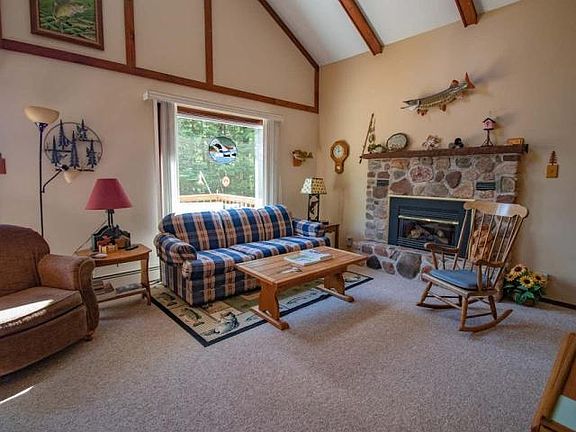 After many happy years at Oxbow Lake, motivated sellers say they must sell. Turnkey and full furnished, there's plenty of summer left to enjoy ay this great 3BR, 2BA home with complete privacy! A beautiful setting encompassing 4.3 wooded acres, and 257' of level frontage with southeast-facing island views. Spacious and well cared for, the home features a fieldstone fireplace, beamed cathedral ceilings and a huge lakeside deck. Room for family and friends with two bedrooms and a full bath on the main level, and a large loft bedroom with additional full bath upstairs. Full unfinished basement with washer/dryer and newer high efficiency furnace. Exterior remodel within the last ten years includes roof, insulation siding, windows, aluminum, soffits and facia. This home is being sold completely furnished, from the appliances to the furnishings down to the pots and pans, even the firewood! A wonderful place for your family to make new memories, ready to enjoy!