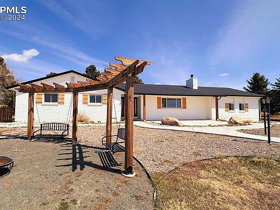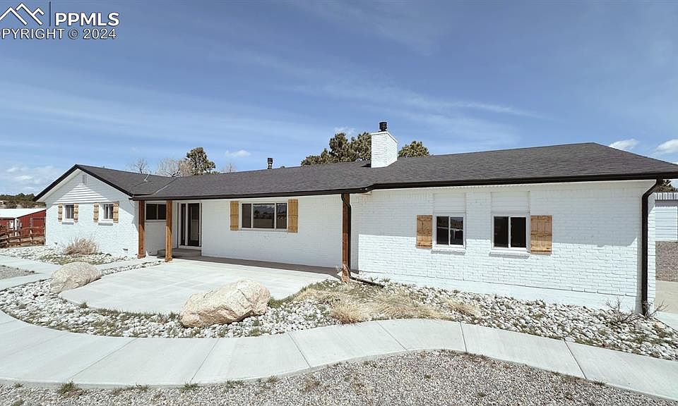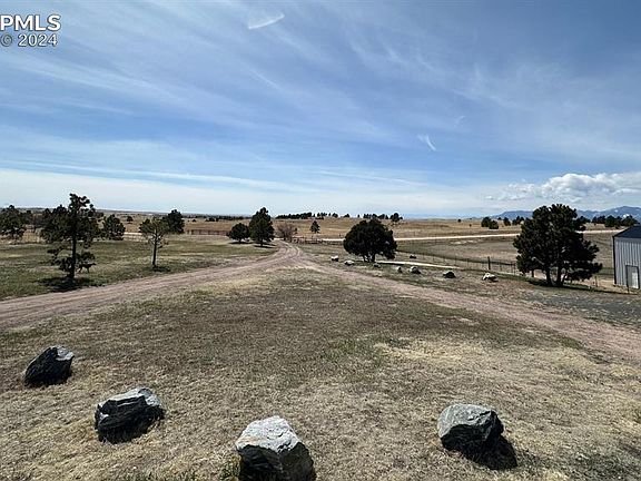 Experience unparalleled elegance and exclusivity with this stunning 12-acre horse property, presenting million-dollar, unobstructed views of Pikes Peak and the majestic front range. Situated in a serene enclave yet conveniently close to Colorado Springs, Black Forest, and key highways, this location offers the perfect blend of rural charm and urban accessibility. This exquisite ranch-style farmhouse has been meticulously updated, featuring a grand living space with a new gas fireplace and a dining room that opens to a fenced backyard complete with a hot tub—the ideal retreat to unwind after a busy day. The remodeled gourmet kitchen is a culinary dream, boasting hand-scraped hardwood floors, custom-built cabinets with modern conveniences, quartz countertops, a center island with a butcher block top, and high-end stainless steel appliances. The primary suite is a haven of relaxation with a walk-in closet, additional shoe closet, and a spacious en-suite bathroom. Added comforts include a flexible office space with stylish sliding shutter doors, a newly updated laundry room with custom cabinetry, and a utility sink. Outdoors, the property excels with multiple enclosed areas for livestock, a newly constructed agricultural barn, a 4-bay detached garage equipped with ample electrical service, and several other sheds for all your storage needs. The expansive grounds are enhanced with new exterior paint, updated soffits with lighting, and a freshly laid driveway, making this property a true gem. This rare find, free of HOA constraints and equipped with numerous upgrades, is a sanctuary for those who value privacy, luxury, and the natural beauty of Colorado. Whether you're drawn to the equestrian lifestyle or simply seeking a majestic retreat close to city amenities, this property promises a unique and compelling lifestyle opportunity.