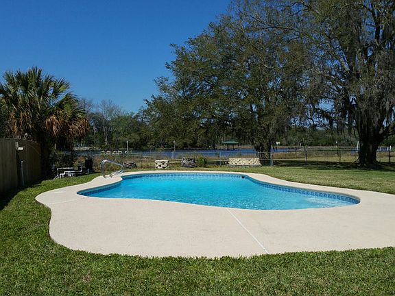 Fantastic brick home on the Ribault River front with deep water access for all of your entertaining pleasures. Almost an acre lot with an in-ground pool, fenced yard, additional parking for recreational vehicles, security, professionally landscaped. Enjoy fishing, boating from your own dock or just watching the sunset while sitting at the fire pit. Even a summer kitchen. Home has 4 bedrooms 3 full baths, stainless steel appliances including washer and dryer. Hardwood floors, new carpet, huge master bedroom with deep soaking tub. Roof 4 years new. Buyer to verify all information from tax records.