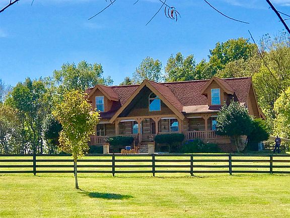 Gorgeous cabin living! Come see this 3 bed/2 1/2 bath dream home on 5.3 acres! White & yellow pine from North Carolina~Colorado river rock~floor to ceiling fireplace! One of a kind front "speak easy" door from California! Deep covered porches on all sides! Your guests & visitors will approve! *Only one owner!* Sellers are READY to move! This cabin retreat has been a dream come true for its owners but they can no longer manage all this land and square footage! Their motivation is your gain!!