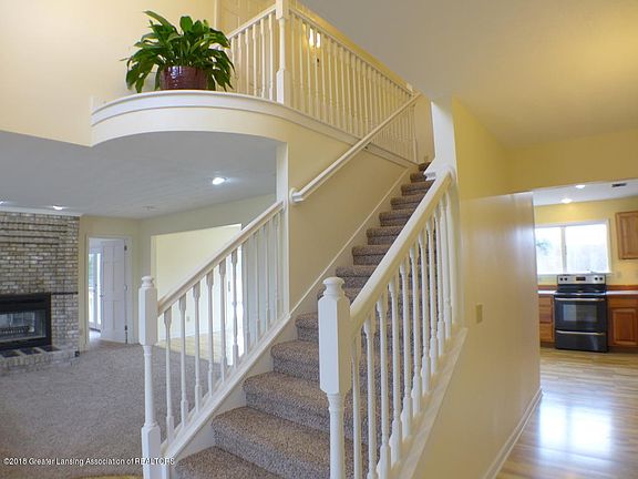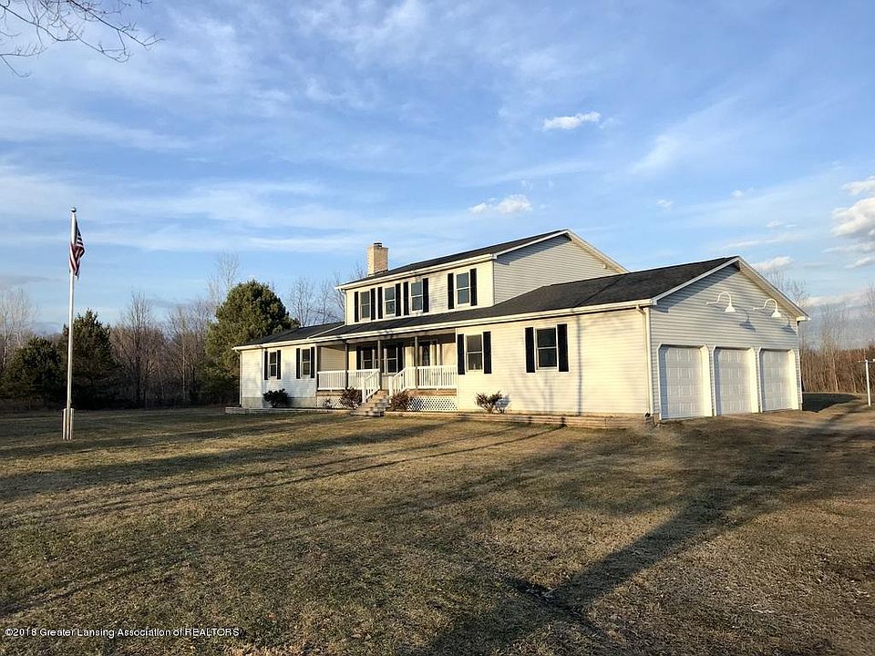 Live the resort type lifestyle in this secluded home on 15 acres of woods, great views, campfires, cross country skiing, bike and running trails. A Grand front porch leads to a 2 story entry with wide open staircase and a lookout at the top for tranquil views of the evening sunsets and custom flag pole.Living room has a 2-way masonry and marble fireplace with full chimney. Tons of natural light in the open floor plan with views of the outdoors from most everywhere in each room and a 1st floor stereo speaker system!Great kitchen woodwork, outdoor view, walk-in pantry, closets, cabinets and 1st floor laundry room with half bath. Master suite has 2-way fireplace, walk-in closet, whirlpool bathtub with corner windows that open for an outdoor feel.Upstairs are 3 more bedrooms, bath and a flex room.The part finished basement has lookout windows. And a utility room has 5 zone heating, newly installed central air. A 3 car gar, with high ceiling, a pole barn and a large deck.