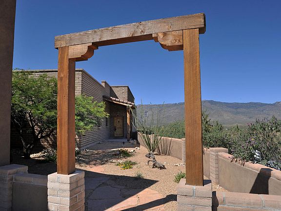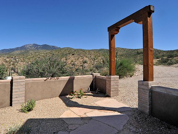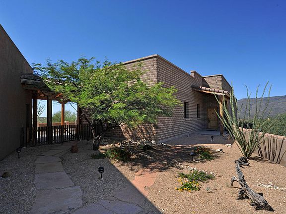 Enchanting custom built exposed adobe three bed & three bath plus den, spacious 2,461 Sq Ft home located on 10 lush acres of Sonoran Desert, horse property adjacent to X9 Ranch. Only 35 minutes away from Downtown Tucson, private and surrounded by breathtaking 360 views of the Rincon Mts. Inside features: entertainer's gourmet kitchen w/ custom knotty Alder wood cabinets, full slab granite, gas stove. Solid wood doors, double pane windows w/wood trim thru-out, soaring ceilings w/exposed rustic wood beams, ceiling fans, polished stained concrete floors, recessed lighting, custom designer fixtures thru-out, with split floor plan. 2 car detached garage with bonus room attached plus workshop with power. Massive covered patio with plenty of room for entertaining & enjoying desert sunsets.