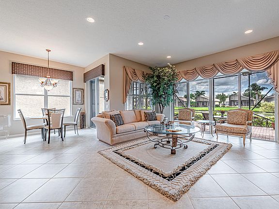 This beautifully landscaped and highly appointed Atlantic model in Valencia Shores spared no expense. The kitchen and bath cabinetry so tastefully and classically upgraded as are the countertops. The guest bath has a stall shower upgrade. The linen closets are converted to custom cabinets.Throughout the living areas there id soft neutral tile on the diagonal. The den/office is customized to be versatile. The extended wrap around screened patio is surrounded by lush landscaping and a magnificent view. The home is protected with accordion shutters. Some of the updates include Newer refrigerator 2017Newer HWH 2018, A/C 2014Washer /Dryer 2yrs oldValencia Shores is one of GL's most elaborate Active Lifestyle communities. There are 2 separate clubhouses one of which is an Athletic Cen