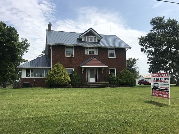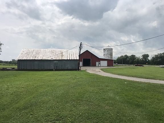 This is a nice country setting close to town; 4-5 bedroom 2.5 bath house has plenty of charm with the natural woodwork spacious living & sun rooms, plus a newer roof, a shop barn, a livestock barn and a corn crib. The property may be divided.