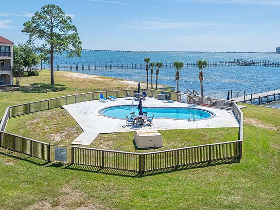 Welcome to this stunning two-story condo located in one of Navarre's premier gated waterfront communities. This 2-bed/ 2.5-bath home has large tile flooring throughout the home. The spacious kitchen is equipped w/granite countertops, smooth-top range/oven, dishwasher, side-by-side refrigerator, walk-in pantry w/ built-in shelving, convenient stackable washer/dryer (included). Enjoy beautiful views & natural light from the full-length sliding glass doors in the family & dining area, leading to a private balcony--perfect for relaxing or entertaining. The master suite offers a tiled shower/tub combo, ample closet space, and sunset views from the balcony. Second bedroom also features its own private ensuite bathroom, complete w/ walk-in shower. Community amenities include a pool, private dock, grilling area, and direct access to the Intracoastal Waterway for fishing, boating, and more. Also, conveniently located near Navarre's white sandy beaches, shopping, and dining. Easy commute to Hurlburt Feild & Pensacola NAS