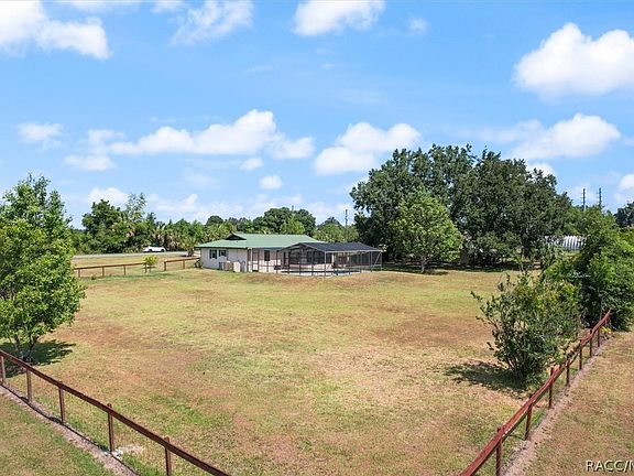 The heart of the home is the open living area, seamlessly connecting to a well-appointed kitchen with sleek upgraded appliances, perfect for culinary enthusiasts. Enjoy the split floor plan with the primary suite on one half of the house and the guest bedrooms on the other offering privacy and functionality. Step outside to the backyard oasis with an inground pool and screened in back porch perfect on a hot summer day! The expansive grounds include one acre of fully fenced land, ideal for outdoor activities, entertaining, or just enjoying nature. The property features well maintained landscaping and a unique fruit cocktail tree producing lemons, limes, and tangerines, ready to pick this year! Without the restrictions of an HOA, you have the freedom to make this property truly your own. Additional amenities include two sheds for versatile storage, with one already prepped for electricity—perfect for a workshop or hobby space. Updates include: fresh new interior paint throughout the home, pool was resurfaced in 2022, well pump and holding tank replaced in 2021, water heater was replaced in 2022, & newer water softener system (owned not leased).