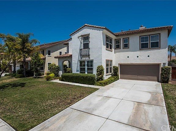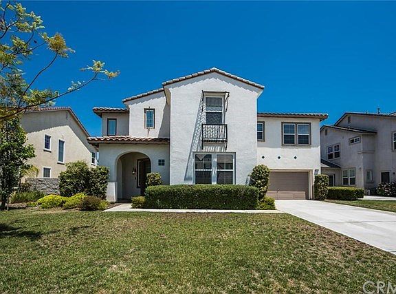 Beautiful Orangecrest Home with 3746 square ft of living space, including four bedrooms and four bathrooms, and a three car attached garage. Enter into soaring cathedral ceilings and many windows adding to light and bright atmosphere of home. Flowing floor plan features formal living rm, formal dining rm, and sitting area near entry with den/office downstairs. Near the rear of the home is the sizable kitchen offering granite countertops, honey maple wood cabinets, and opening to breakfast nook and family room. Breakfast nook includes large pantry and french door leading to backyard. Family room features fireplace and windows with view of backyard. Double stairway w/custom wrought iron spindles leads to upstairs landing w/cozy sitting area with built-in cabinets and recessed lighting.Double door entry into master suite w/french door leading to viewing balcony.Beautiful master bathroom with dual vanities, large oval bathtub and spacious walk-in closet. Three guest bedrooms located down the hallway, one with private bathroom(perfect for guest quarters). Convenient upstairs laundry room with cabinets and usable sink area. Pool sized backyard is professionally landscaped w/ hardscape and lush grassy areas.Easy access to parks, schools, shopping, and freeways.