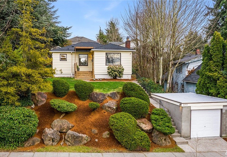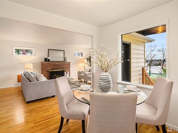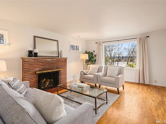 Welcome to N. Green Lake. Perched high off the street w/ Olympic Mountain views this 4 bed - 1.75 bath home is waiting for you. Lovely hardwood floors throughout the 1st floor and a wood burning FP in living room. Lower level has 2 bedrooms, laundry, storage, & 3/4 bath. Relax at the fire-pit in back yard. Large detached garage for bonus storage. 2 blocks to Green Lake & all its treasures. Easy commuter location, 1 mile to Northgate light rail or 1.5 miles to new Roosevelt Station.