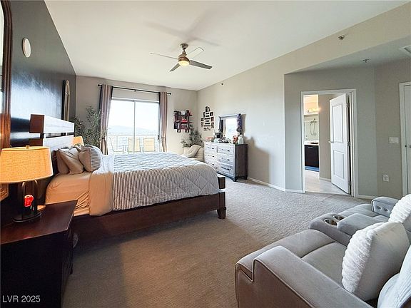 HIGHLY SOUGHT AFTER 19TH FLOOR END UNIT W/ STUNNING VIEWS FROM 3 SPECTACULAR BALCONIES! 3/BR 3/BA. PRIMARY & JR SUITES BOTH HAVE PRIVATE BALCONIES ALONG W/ A 3RD BEDROOM & GUEST BATH. PRIMARY SUITE HAS ITS OWN PRIVATE ENTRANCE FROM HALL, HUGE WALK IN CLOSET & RESORT LIKE BATHROOM W/ SEPARATE SOAKING TUB & SHOWER. PLANK TILE FLOORING THROUGHOUT & PLUSH UPGRADED CARPET IN BEDROOMS. KITCHEN BOASTS QUARTZ COUNTERTOPS, LARGE KITCHEN ISLAND W/ BREAKFAST BAR, TOP OF THE LINE APPLIANCES, CERAMIC GLASS BACKSPLASH & AMPLE CABINETRY. EXPANSIVE GREAT ROOM W/ DINING AREA, DEN & 2 SLIDERS TO THE MAIN BALCONY. LAUNDRY W/ SINK & CABINETS/CLOSET. THIS UNIT COMES WITH 2 PARKING SPACES & A STORAGE UNIT. CLOSE TO THE RAIDERS STADIUM, TOWN SQUARE, SOUTH POINT CASINO & QUICK ACCESS TO THE I15 & BLUE DIAMOND. DON'T MISS OUT ON THIS AMAZING OPPORTUNITY! HOA COVERS COX CABLE, WATER, TRASH, SEWER, PARKING SPACES AND STORAGE ALONG W/ AMPLE AMENITIES MAKING THIS HOME AN ALL INCLUSIVE LIFESTYLE.