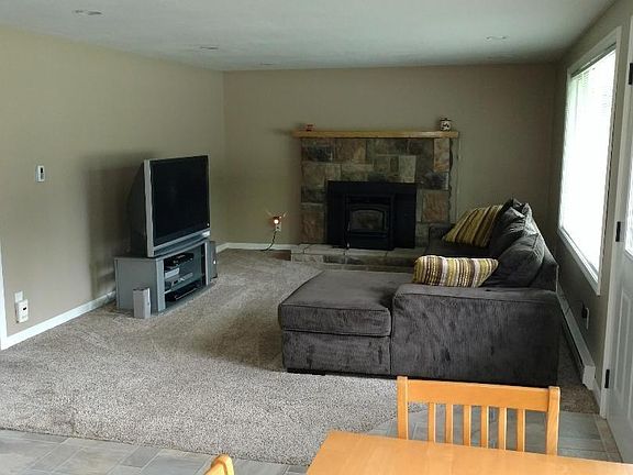 2 BEDRoOM, 1 BATH Ranch MAINTENANCE . FREE (only couple years old vinyl) EXTERIOR ATT. GARAGE. WOODED & PRIVATE YET PAVED ROAD CLOSE TO TOWN.newer roof ,all new windows, heats perfectly with a pellet stove,( natural gas is also available should you want t hook that up) all remodeled inside w new paint and new kitchen and bath and laundry area. Beautifully wooded large lot! front and back! mature gorgeous trees! lots of parking, big back yard for fire pit , and privacy! Large storage shed also on property, this is a perfect starter house or a retirement dream! all ready for easy move in and live the dream!