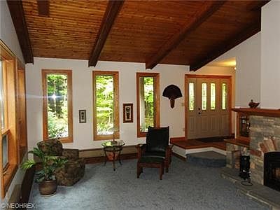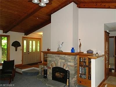 Awesome country retreat! This updated ranch sits on 6 scenic wooded park-like acres, beautiful lake, inviting front porch. Vaulted living room includes newer carpet, custom stone fireplace with a heatolator, built-in bookcases. Nice kitchen, skylight w/remote control, pantry, dining area w/newer oak floor. Remodeled bath w/custom hickory vanity, granite, skylight. Finished walk-out basement complete with a family room, bar, full shower bath, possible 4th bedroom. Landscaped patio area, newer 200 amp electrical panel and circuit breakers, newer above ground pool, Trex deck Heated 8 car tandem garage w/large loft, electric,concrete floor, shelves. Additional large barn. Quick occupancy available.