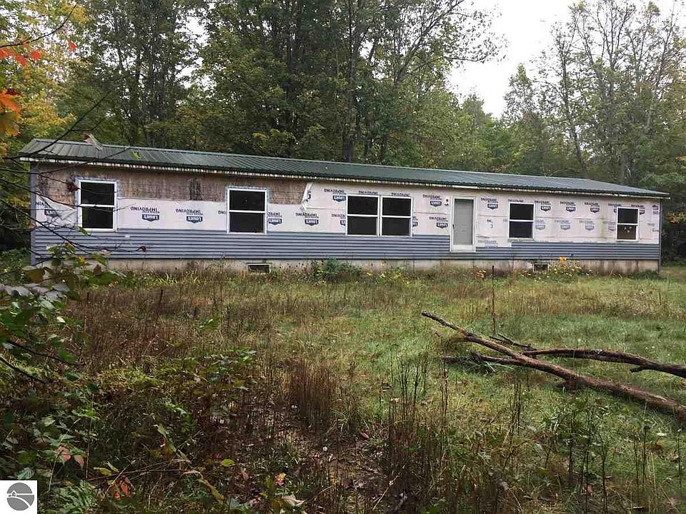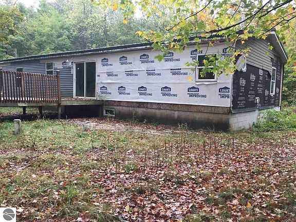 Large manufactured home on a full basement, on 5 wooded acres. Home is a 3 bedroom, with master suite with private bath. There is a full bath for the other 2 bedrooms, as well as a half bath and laundry area on the main floor. The basement is full, with high ceilings and is ready to finish. The house has all floor coverings removed, as well as some fixtures in the master bath, so will not finance with traditional FHA or RD.