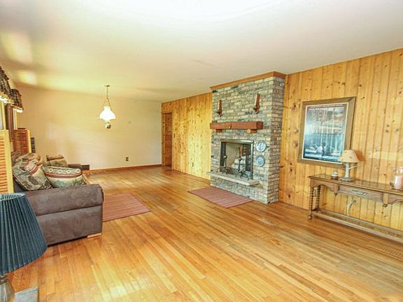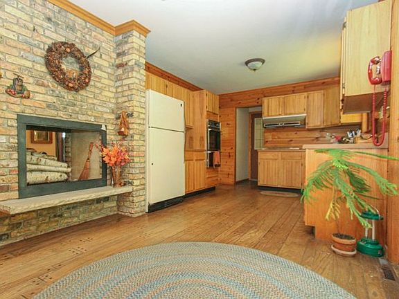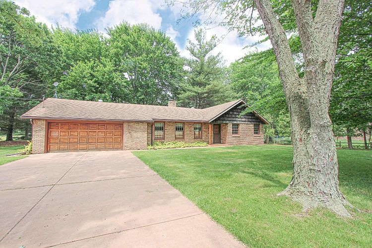 GREAT LOCATION! Live your best country life just outside the city!One-level living in this solid brick ranch home with 3 bedrms, 1 bathroom. Hardwood floors. Rustic warm appeal.Double-sided gas fireplace faces the kitchen and the dining living room area. All appliances stay. Eat-in kitchen with french doors to patio. 1278 sq. ft. of living space on a crawl. Roof has rain drain gutters with transfer of ownership. 2-car attached garage.Separate barn garage has freshly painted trim, and an upstairs studio aptmt or game room with hardwood flooring, and a new hot water heater. Septic and well reports are complete and pass inspections. 2 acres of mature trees in a beautiful setting.Owner is highly motivated and says "bring an offer!".8255 West 400 North, Michigan City, IN