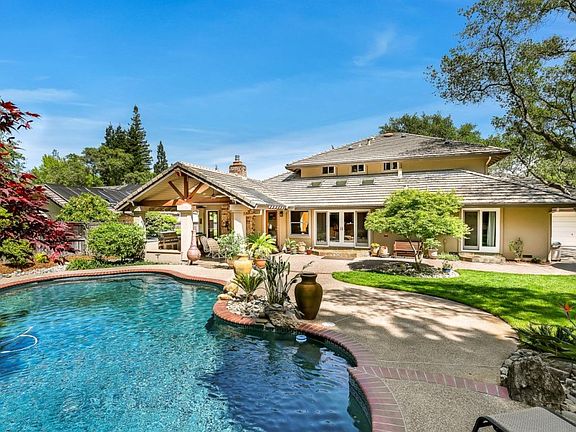 Spectacular property in Hidden Lakes where homes rarely come on the market, nearly half acre with gorgeous landscaping, sparkling pool, full outdoor kitchen, 3,459 SqFt home w/great layout for entertaining, beam ceilings, skylights, 4 bedrooms plus office w/built in custom cabinetry, spacious kitchen w/Monogram appliances, generous master suite w jetted tub.. you wont find a better location, in Eureka School District & right next to Folsom Lake, plus private lakes & parks in the neighborhood.