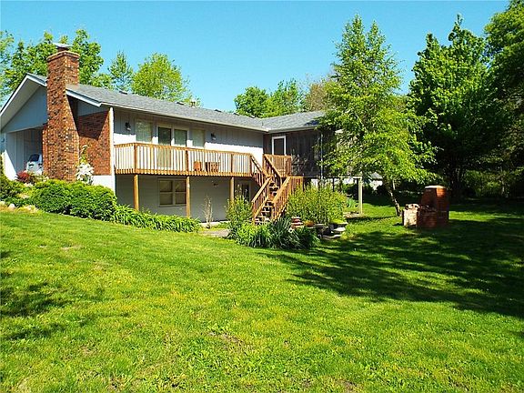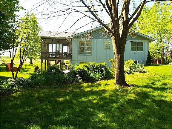 Wild life and birds singing! Is this your idea of country living? Sit on your deck or in the screened in porch and enjoy God's country. Master and one bedroom on the main level, two bedrooms lower level with two walk out doors. One bath up and one bath down. Lots of storage space with potential living quarters on lower level. Gorgeous yard with plenty of trees and flowers. Garage just needs a double garage door and converts to a two car detached garage with workshop.