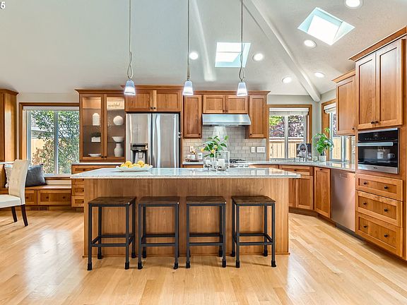 Spectacular single level home with designer upgrades throughout!Truly one of a kind, this recently remodeled showpiece combines luxury, function, and exceptional style. From the moment you step inside, soaring ceilings and a thoughtfully designed layout create a light, airy, and spacious feel. Gleaming hardwood floors lead you to a chef’s kitchen featuring fine wood cabinetry, a stunning 7.6-foot quartz island, skylights, 6 burner gas range and an array of top-tier upgrades and built-ins. Floor-to-ceiling windows in both the living area and expansive primary suite flood the home with natural light. The primary bedroom is a private sanctuary with vaulted ceilings, wall of windows with access to backyard, spa-like bath with bubble tub and heated tile floors. Meticulously maintained with recent upgrades including a 50-year roof, water heater, modern lighting, and fresh paint inside and out. Additional features include a custom Murphy bed with integrated lighting and built-in bookshelves, plus beautifully landscaped, oversized yards—perfect for entertaining or quiet enjoyment.There’s simply too much to list—this home is pristine, packed with premium amenities, and truly move-in ready. Over $200k in high-end designer upgrades create a true custom home experience. A rare gem!________________________________________