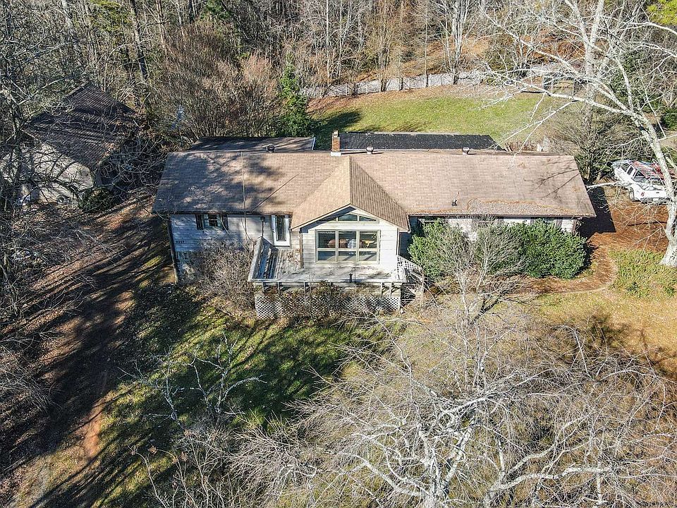 Ranch home within 4 miles of downtown Blue Ridge that sits on 1.2 acres of Unrestricted land. Main floor includes a large kitchen with oak cabinets with a small corner breakfast table with a half bath, pantry/washer dryer room, living room with a vaulted ceiling and a free-standing rock gas fireplace, a large Master with walk in closet and full bath with double vanity, a large, finished storage room. Downstairs is a full-size living room with a rock gas fireplace. Central heat/air, hot water heater with a door opening to covered deck. Large rear yard is fenced in. Has detached 2 car garage that is 42X24 with finished upstairs. Great workshop with power and water with new roof last year. The two-car garage is for two small vehicle or one full size vehicle. There's also a parking area under the rear back porch. The home is presently in a long term rental, but no signed lease agreement.