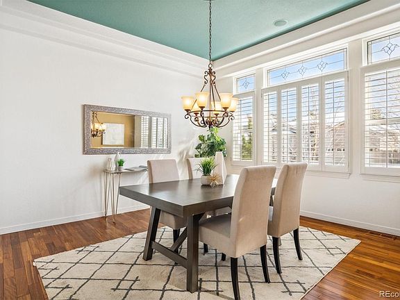 - Description: Beautiful Dinning Room Featuring Lots Of Windows With Plantation Shutters, Trey Ceiling, Surround Sound, Wrought Iron Chandelier, Wood Floors, And Newer Paint.