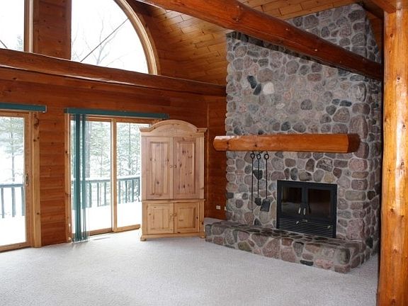 Custom built log home on the shores of Kawaguesaga on the highly desirable Minocqua Chain of Lakes. 4000 square feet of Northwoods charm and comfort await you. The majestic great room with fieldstone wood burning fireplace, pine beams and knotty pine ceiling are surrounded by the Master Suite, custom kitchen, dining room, 2nd bedroom and writer's loft. Walk out lower level has full family room with another fieldstone fireplace, two bedrooms and a full bath.