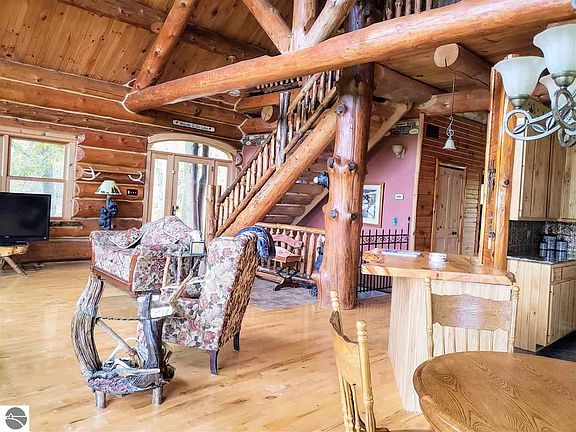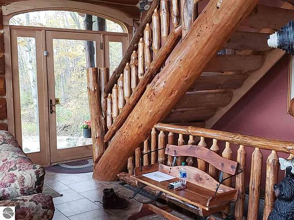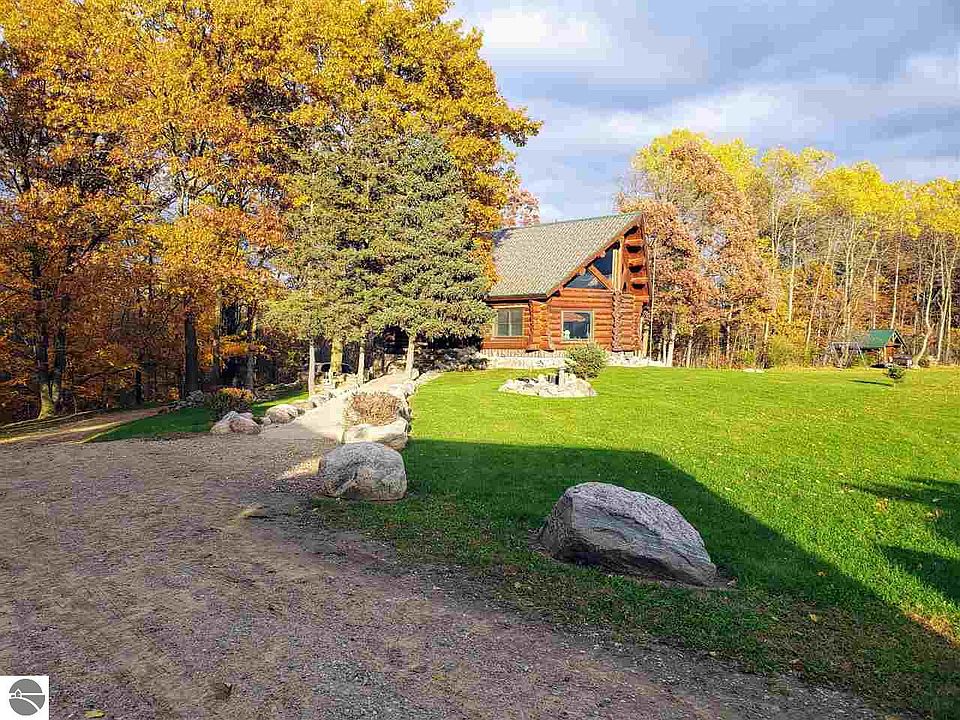 The workmanship in this 3 bedroom 3 bath Log Home is nothing short of phenomenal. A Mid-Michigan Timber home siting on 20 acres Property has open land to plant as well as woods, a creek and views you just have to see. The top of the line materials used, are seen and felt in every corner, from the exotic Black Marinache African Counter tops, to the top quality standing seem metal roof. The highly sought after Kinetico Water System, ten foot ceilings, poured foundation walls are just some of the extras. Beautiful glass entry door with double glass flanking transom windows, large south facing picture windows allows natural light to pour in, a walkout covered second story balcony that over looks the property and creek that flows through this beautiful piece of property. 3rd bed/living area in lower lever almost finished pictures coming. A 30 x 48 pole barn offers 3 garage doors, storage room, an insulated office or man cave with half bath and sink. Sidewalks that glows at night and the full length cement approach keep things tidy The rocks, stone and landscape work is done Come see all the extras and Enjoy Michigan at it's best! NOTE: Property has surveillance cameras on premise.