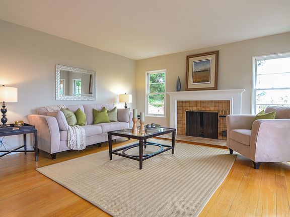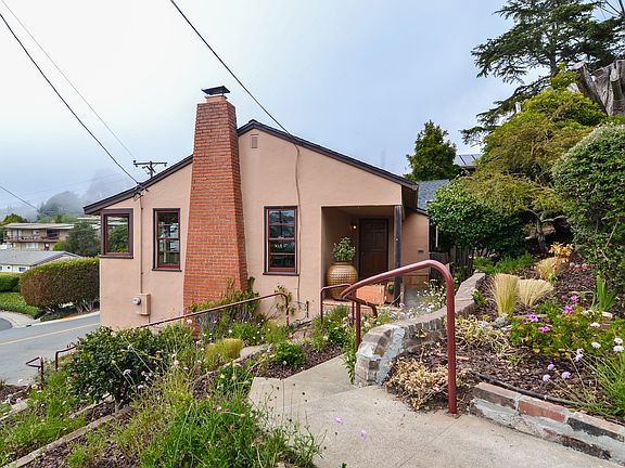 Wonderful El Cerrito hills home on a corner lot. Two bedrooms up and one bedroom down with exterior access (perfect au-pair, teenage sanctuary or office). Large designer master bath with roll-in shower. Lovely drought resistant terraced garden. City views and Mt. Tam views off sun porch.