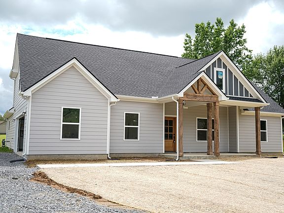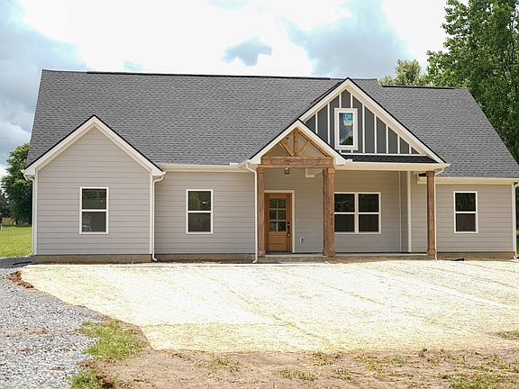 The exterior features durable hardboard siding and a covered front porch with craftsman-style details. Additional highlights include gas central air, a two-car garage, and ample natural light throughout. Conveniently located just minutes from schools, I-65, and local amenities, this move-in-ready home is a must-see.