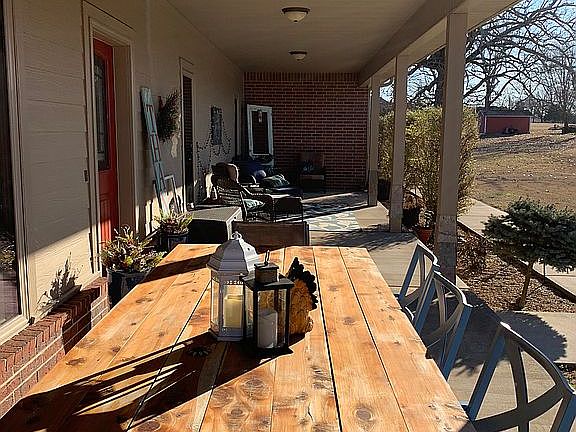 WOW! Beautiful 4br 3ba home 4,359 sq ft on 10.1 superb acres m/l of park like setting. Close to town, medical, shopping, Norfork and Bull Shoals Lakes and famous White River. Geothermal energy efficient with 2 HVAC units. Features include open floor plan, large kitchen, upscale double oven, cabinets galore, split bedrooms, separate living area with kitchenette, bed, bath and loads of storage. Horses are welcome with a tack room and a new 42X40 metal building with electric. Property has multiple fruit trees and a large stocked pond for your at-home fishing and wildlife watching. Extra large covered front porch faces West for sunset viewing and large covered back porch and upper deck faces East for sunrise viewing over the countryside.