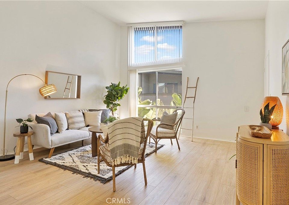 Experience comfort and coastal calm in this beautifully situated one-bedroom, one-bath top-floor condo at Mariner’s Park Village. Located in one of the most desirable and private corners of this gated community, this home offers true serenity with no neighbors above or below. Step inside to a bright and inviting living space with vaulted ceilings that enhance the sense of openness. The living room opens to a private balcony—perfect for morning coffee, reading, or relaxing with the ocean breeze. The balcony is also accessible from the bedroom, creating a seamless indoor-outdoor flow and an ideal retreat at the end of the day.The kitchen is well-designed and functional, offering everything you need within easy reach and plenty of potential for your personal touch. Additional highlights include an assigned carport with outdoor storage, laundry conveniently located just downstairs, and a quiet location shielded from freeway noise.Residents enjoy the well-maintained, park-like grounds of Mariner’s Park Village, featuring two swimming pools, a clubhouse, and a playground. The HOA covers hot and cold water, adding to the home’s exceptional value. If you’re looking for a peaceful, secure home with a coastal feel and quality community amenities, this one is a standout opportunity in Mariner’s Park Village.