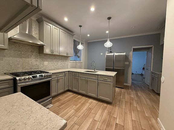 Make this spacious, modern, recently-renovated home yours! This entire 2-floor house,(excluding the basement) is in a highly-sought neighborhood that offers both quiet and convenience (MTA, shopping, good schools, Downstate/Kings County hospitals, and more). It begins with a cozy front porch that's perfect for morning coffee or tea. You then enter an ante-room that can be used for storage, umbrellas, shoes, etc. - or even a small office/workspace - before spilling into a spacious livingroom, and other rooms which can be used as a dining room and office, or guest/4th bedroom. Then onto the well-appointed kitchen that is a home chef's dream with high-end stainless appliances. You will also find access to the backyard and a lovely half-bath on this floor. Onward and upward the detailed wooden staircase to the second floor where you will find TWO master bedrooms AND a roomy third bedroom, one of which boasts a balcony/terrace for relaxing evenings in spring and summer. There is hardwood flooring throughout this amazing home, as well as high ceilings and an ample numbers of windows, making this a light-filled and airy sanctuary for you and your family. Showing Sunday, 1/26/25 from 3:45pm - 5:00pm.