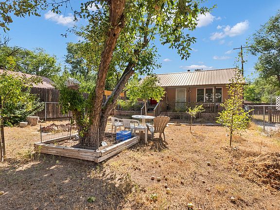 Lovely two bedroom bungalow on a quite lane with a beautiful portal to enjoy your large landscaped front yard. Front yard has plenty of shade along with established fruit trees. Spacious living room with wood floors. Eat in kitchen has plenty of cabinet and counter space with gas stove. Home has a copper color pitched pro panel roof. Home is close to shopping an easy access to Los Alamos & Santa Fe.