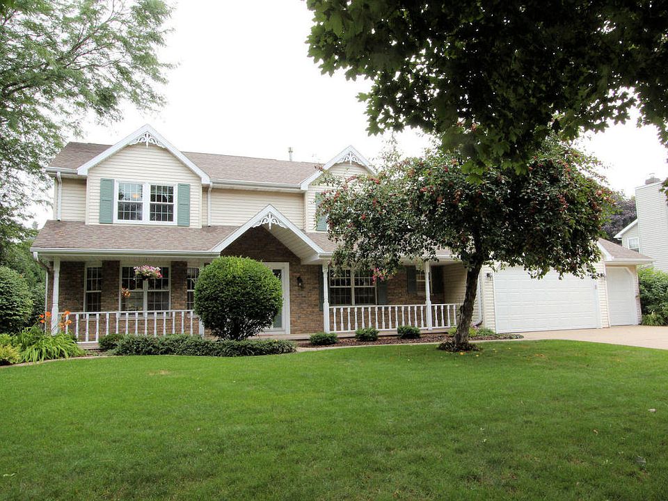 SENSATIONAL APPROXIMATE 3,000 SQ FT COLONIAL WITH 4 BEDROOMS, 2.5 BATHS, 4 SEASON SUN ROOM, 3 CAR ATTACHED GARAGE, COVERED FRONT PORCH & BEAUTIFULLY LANDSCAPED YARD! Fantastic Family Room with Floor to Ceiling Brick Natural Fireplace with Raised Hearth & Wood Mantle with Built-in Bookcases, Bright Updated GRANITE Kitchen with Large Center Island Snack Bar, Planning Desk, Custom Oak Cabinetry, Ceramic Tile Backsplash and Pantry Area, Formal Dining Room with Chair Rail and Crown Moulding, Formal Living Room, Gorgeous 4 Season Sun Room with Divided Light French Doors, Cathedral Ceiling & Entry to Paver Brick Patio, Main Level Office and Laundry Room, Master Bedroom Suite, Lower Rec Room with Built-ins and Beautifully Landscaped Yard with Perennials! EXCEPTIONAL HOME!