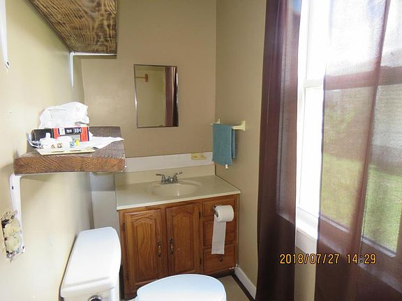 Nice two bedroom home with living room, dining, eat in kitchen, enclosed rear porch, large 24 x 44 garage with two garage doors and concrete floor and electric. Would be great house with large garage for someone who wants a place to tinker , also house had new metal roof and new wiring according to seller