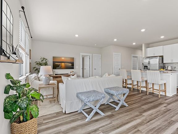 Step inside, and boom! Sunshine EVERYWHERE. With so much natural light, you might start photosynthesizing. The kitchen? Bright white with tile backsplash and loads of counter space. The quartz island isn't just a place for meal prep; it's prime real estate for your best charcuterie board. The primary suite is beautiful and spacious, and the other bedrooms share a bath off the hall. And they’re ALL on the main level. The upstairs flex spaces are fantastic - use them for workspace, nap space, or hide-from-the-kids space. Your choice! There’s even a walk-in storage room for seasonal clothes and décor. For $65/month you get access to a pool, walking trails, and a dog park. You'll enjoy regularly scheduled food trucks and a growing village of shops, too! $2500 incentive with preferred lender.